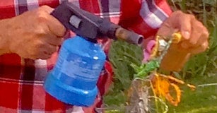 C'est plutôt une séquence peinture et sculpture. On a donc ressorti l'acrylique et on trie les morceaux de plastiques à sculpter à la flamme. Travail d'extérieur, travail de printemps...